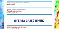Jak zawsze, mamy dla Was bogatą ofertę zajęć artystycznych i rozwojowych - dla małych, dużych i tych całkiem dorosłych.